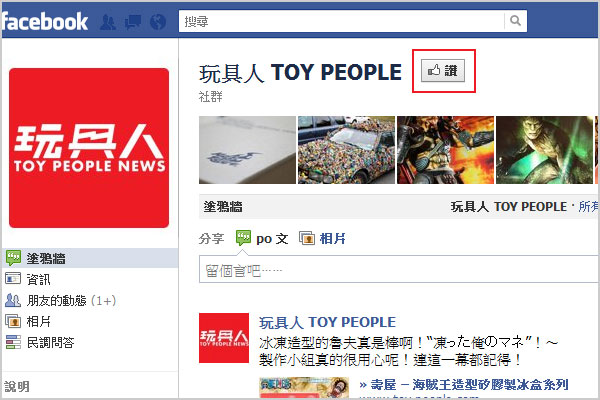 2.“玩具人 TOY PEOPLE NEWS”FaceBook 粉絲團上側。