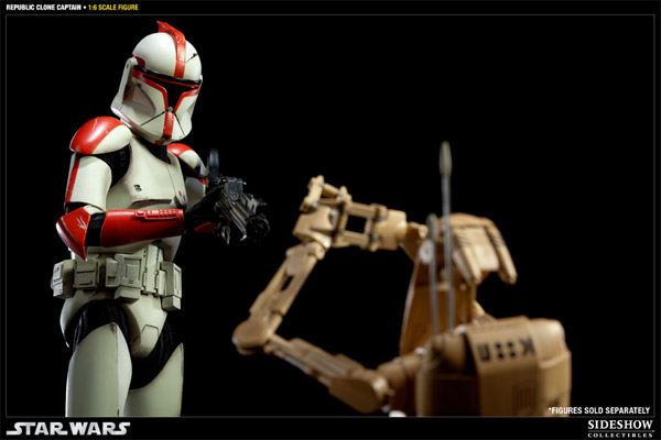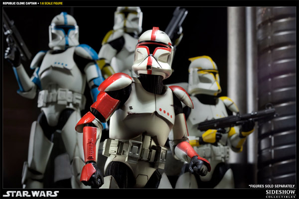Sideshow 最新推出了星際大戰複製人戰爭中相當活躍的複製人士兵,最新角色“複製人隊長”。不像後來帝國統治之後統一使用白色盔甲,由於當時共和國處於四處征戰的局面,所以有複製人士兵系統地以顏色區分軍階與兵種,複製人白兵中士-綠色(Clone Trooper Sergent)、複製人隊長-紅色(Clone Trooper Captain)、複製人中尉-藍色(Clone Trooper Lieutenant )以及複製人指揮官-黃色(Clone Trooper Commander)。
