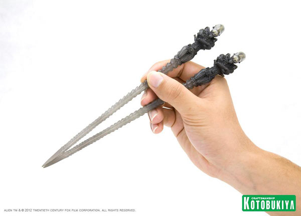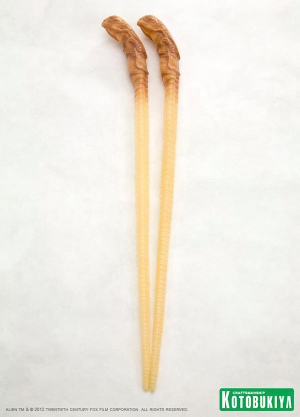在推出異質型產品,結合造型與生活雜貨取得廣大的成功之後,壽屋繼“星際大戰”造型筷子、“日本刀箸”造型筷子、“新世紀福音戰士插入栓駕駛艙”造型筷子與“哈利‧波特魔杖系列”造型筷子之後,壽屋再度推出三款經典科幻恐怖片“異型”(Alien)造型筷子;包括了從抱住人臉寄生的“Face Huggers”、胸口竄出的“Chest Bursters”以及最終型態“Big Chap Alien”!這些獨特、有趣又創新的造型筷子,使用了高超技術的雕刻造型表現,並且逼真地忠實傳達細節的透明骨骼,全長約9英吋(約23公分)的筷身使用異型尾巴的造型製作!