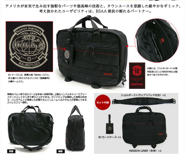 日前曾經介紹過為慶祝惡靈古堡15週年,由惡靈古堡與著名背包品牌BRIEFING合作,預定於e-CAPCOM推出預購的限定商品情報。當時僅能從合成圖片中看到部分外貌,如今官方已經正式揭露背包的樣式與機能了!從介紹來看,包包採用了美軍耐用標準去設計,可以變換手提、側背與斜背三種形式。背包外側附有BSAA標誌的證件套,打開內裡則有超好看的惡靈古堡15週年式樣的紅黑紀念圖樣。背包大小約43X32X14公分,日幣參考售價54,600元,預計2012年3月推出,目前官網顯示數量偏少,有愛的人快去搶吧!