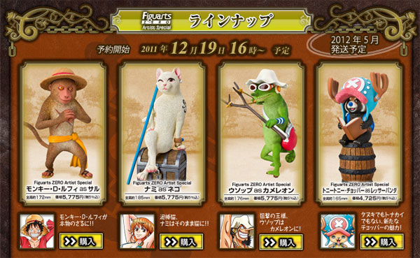 第一階段魯夫、娜美、騙人布以及喬巴將於2011年12月19日開始接受預約,2012年5月發行。