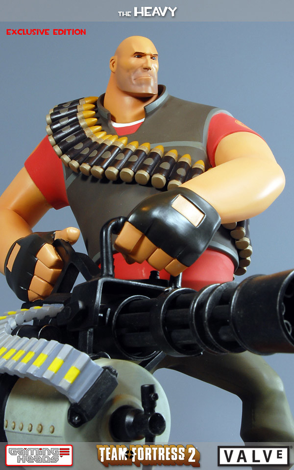 美國新的玩具廠商“GAMEING HEADS”與“Valve”合作,最新推出了TF2兩款遊戲造型雕像。Team Fortress 2 “The Heavy” Polystone Statue,預計2012年第2季發售,有紅藍兩色可選擇,普通版售價229.99美金,限定版額外贈送一個嚴肅表情頭雕售價249.99美金。