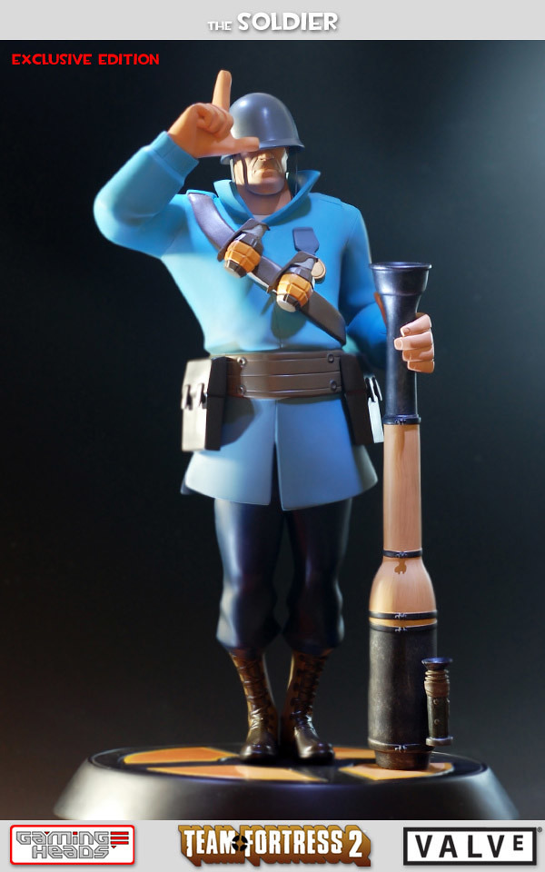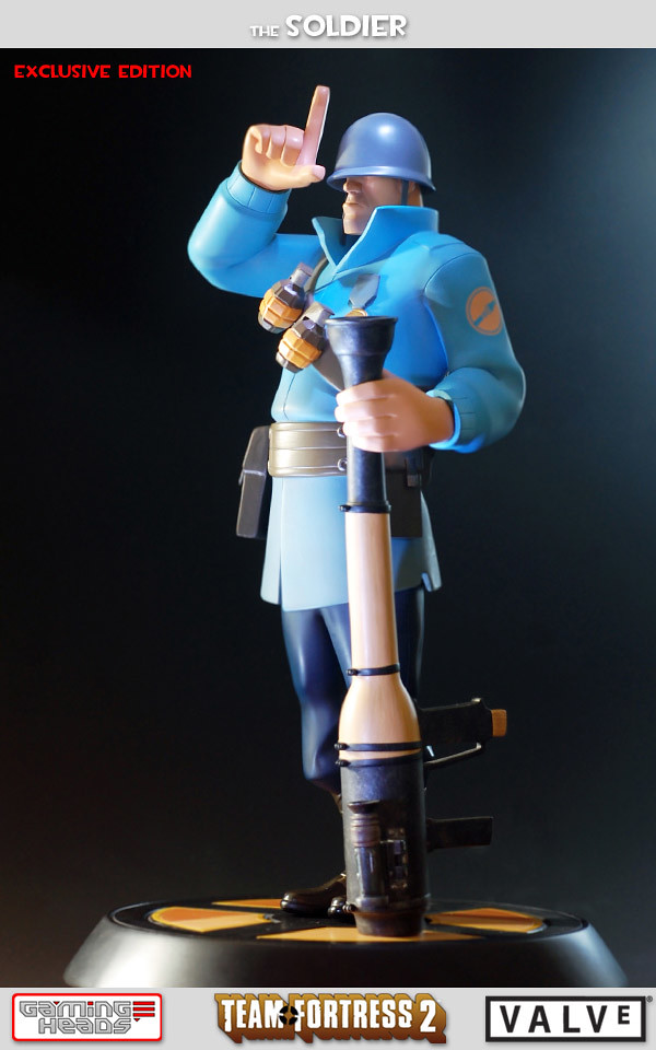 Team Fortress 2 "The Soldier" Polystone Statue 有紅藍兩色可選擇,普通版售價219.99美金,限定版額外贈送一個新造型火箭筒售價234.99美金。