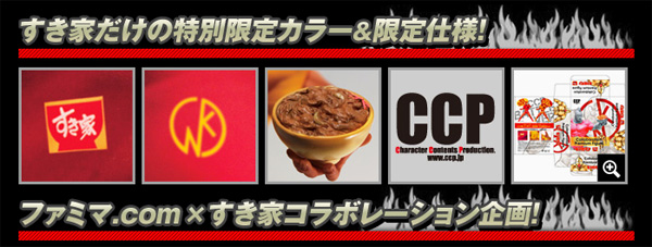 日本知名牛丼連鎖店“すき家”與知名造型專門製作公司CCP聯手合作,推出了“牛丼の具×キン肉マン特製フィギュアセット”。從1979年連載至1987年全387話的金肉人,描述主角金肉人在摔角擂臺上,與各式各樣超越人類的“超人”戰鬥,除了劇中熱血的友情、火災場蠻力的設定與棄惡揚善精神之外,也出現許多當時少年漫畫少見的暴力鏡頭。
