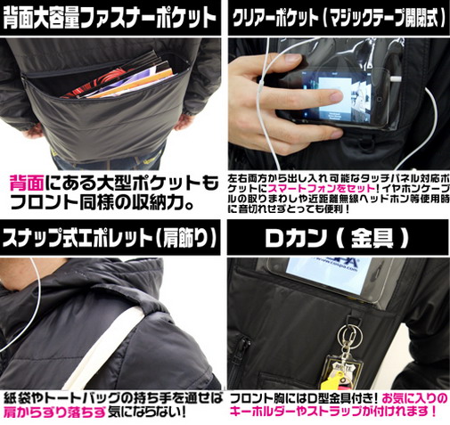 玩具新聞 COSPA 動漫迷高機能外套介紹! 玩具課長 2011-12-24 22:48:18 分享 ✕ 分享 已複製網址 分享到 Facebook 分享到 LINE 分享到 Reddit 分享到 Twitter 分享到 Plurk 分享到微博 日本知名動漫周邊設計公司COSPA,推出專為動漫迷設計的高機能外套,從胸前可以放置MP3的透明夾層,到兩冊及背後為放置漫畫或週刊的大容量設計,每一項巧思都考慮到動漫迷的獨特需求。還有需多獨特設計與運用等您發掘,日幣參考售價11000,為國際書展準備,現在快到COSPA買一件吧! 玩具課長 十分老實的上班族,夜夜入眠想著的都是玩具公仔... 如果你也一樣睡不著,歡迎加入玩具人!