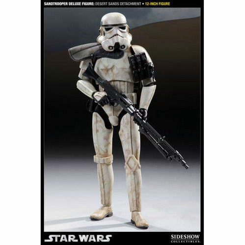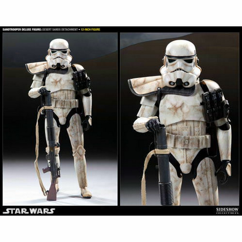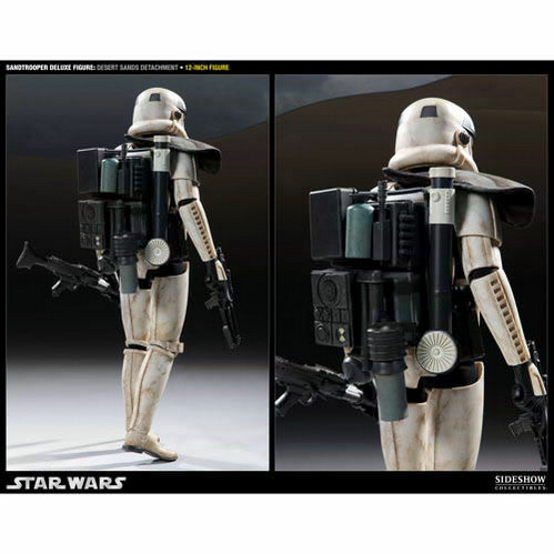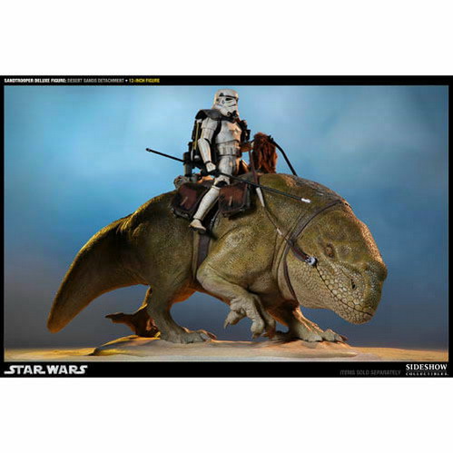 星戰迷注意啦!SIDESHOW新公佈了星戰白兵DX版—沙漠部隊(sandtrooper )1/6公仔。原作設定出自「星際大戰4—新希望」,是帝國派遣駐紮在高熱沙漠星球的部隊。為了適應嚴酷環境,身上的配件有別於一般白兵,背上的求生設備是一大特徵。此外作品身上的風沙痕跡處理相當完美,看一眼真的會覺得剛在沙漠中經過一番激鬥般。另外本作也可以搭配選購坐騎(Dewback),兩者配合相當完美,可以擺出許多有趣的姿態,可玩性與蒐藏價值大大提高!白兵美金參考售價134.99美元、坐騎(Dewback)美金參考售價299.99美元,提供大家參考!