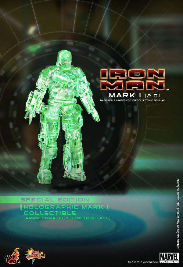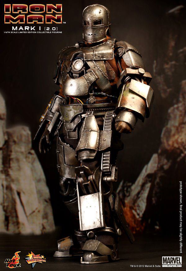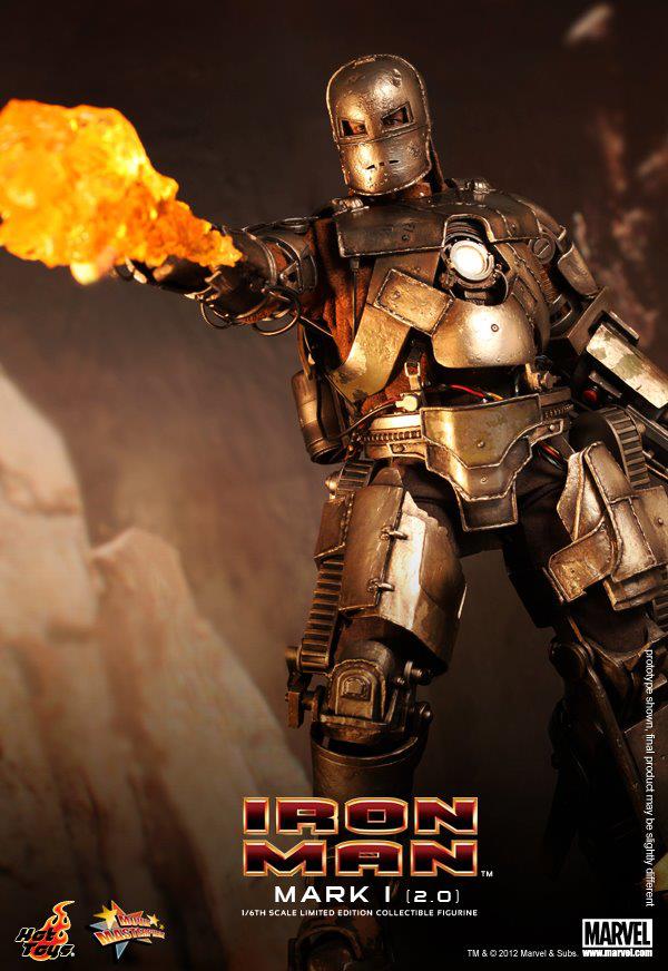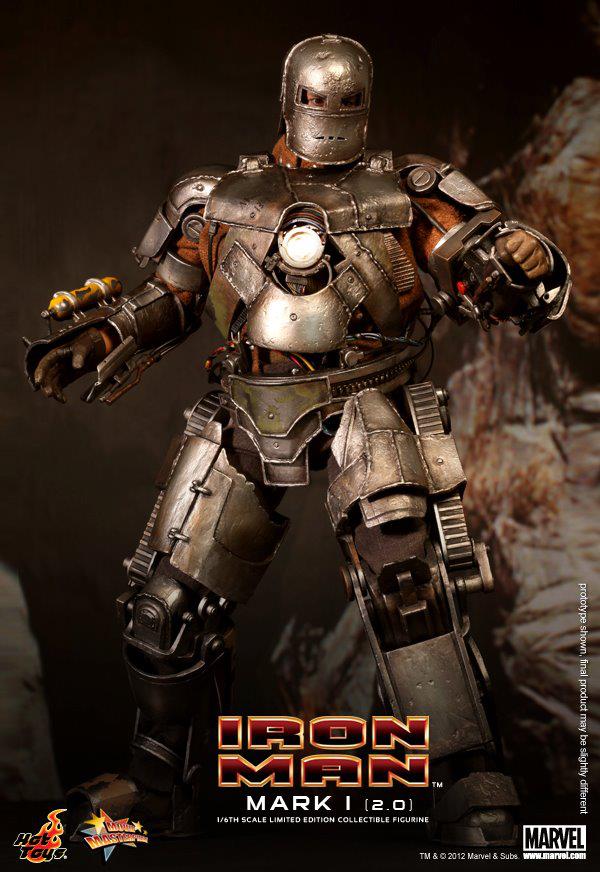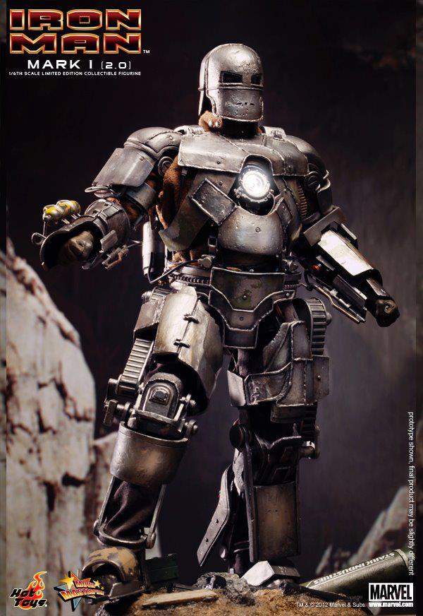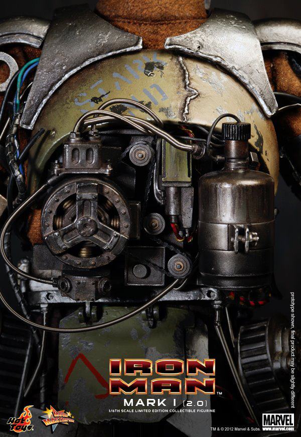 馬克1(2.0)將有更多的手工金屬打造細節、厚重金屬的塗裝、污損以及舊化的質感,更貼近原作的提升了外露的管線,並且大幅度提升了頭雕的水準,繼傑克船長之後,又一款Hot Toys 挑戰自我的作品!新版的鋼鐵人馬克1還追加了火焰噴射的特效零件,以及Special Edtion 將附贈一個1/6比例,3吋的MK 1 擴充實境虛擬零件!