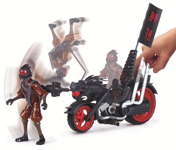 Evil Foot Clan Dragon Bike 反派也不甘示弱!Evil Foot Clan 也推出自己的Dragon Bike,附贈一隻限定版帶著龍頭安全帽的小兵,輕按後座的按鈕就能360度空翻下車!這實在是太酷!