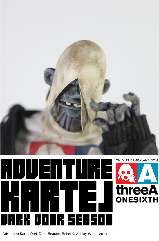 threeA 商品中敘述殭屍世界的作品Adventure Kartel,將推出最新款的12吋殭屍商品“Rehel” “Rehel”是基督教惡魔崇拜樂團“CLOVEN HEART”的主唱,並且只有AK系列主角Tommy 知道他是個殭屍。