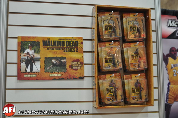 最近超火紅的美劇陰屍路,玩具一波波推出,正式掀起僵屍熱潮!除了小編曾經介紹過有爆頭機關的僵屍外,第一波推出的還有會啃咬的僵屍、會走路的僵屍以及可以任意分屍組合的僵屍,雖說幾位主要角色塗裝都很差強人意(或許我Hot Toys玩太多),但衝著每個僵屍都很有特色而且具備創意機關,小編就立下一定要集結僵屍大軍的心願(然後主角買一隻就好,哈哈,好慘~)根據http://www.actionfigureinsider.com刊載圖片,在紐約舉辦的Toy Fair 12,麥法蘭攤位除了推廣日前推出的電視劇第一系列,掛在牆上的圖卡也揭露了第2波可能推出角色,小編特別注意到那只有半身橫屍在腳踏車邊的活屍,以及在井裡被「釣」上來的肥屍,心裡就按定第2波買定啦!(同樣活人都PASS),以下情報轉載自http://www.actionfigureinsider.com,提供大家參考!
