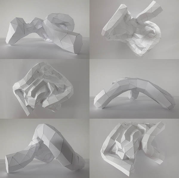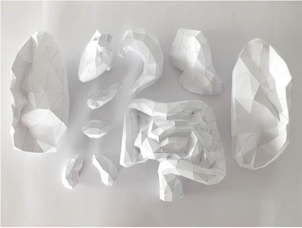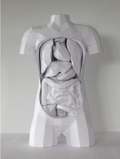 在colossal看見澳洲的建築師Horst Kiechle以白色紙卡來創作人體的塊面立體,才想起小編在高中時候做室內設計也是要用些紙卡來DIY自製立體模型,當然程度和Horst Kiechle相差的有十萬八千里之遠,Horst Kiechle 先利用3D 軟體在電腦建構出要製作的模組,在一一拼湊出所有零件,連當中分別的器官都仔細的做出來了,喜歡紙模型的玩具人可以前往Horst Kiechle's flickr 有更多的製作照片可以欣賞。