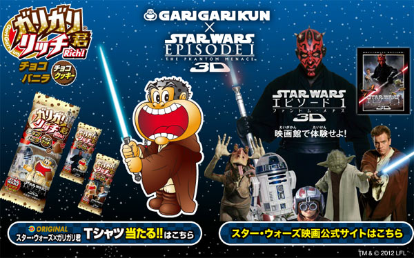 情報 STAR WARS ガリガリ君化身絕地武士?!冰棒變光劍! 熊倒 2012-02-17 12:30:04 分享 ✕ 分享 已複製網址 分享到 Facebook 分享到 LINE 分享到 Reddit 分享到 Twitter 分享到 Plurk 分享到微博 即將在3月16日於日本開始播放的“星際大戰首部曲:威脅潛伏3D”,與日本老牌的經典冰品廠商“赤城乳業”所所推出的“ガリガリ君”作異業結合的宣傳活動! “ガリガリ君”推出最新口味的香草巧克力口味冰棒,將外包裝設計上了“歐比王”、“R2-D2”與“達斯魔”的造型,並且“ガリガリ君”搖身一變成了絕地武士,就連冰棒的木棍也被設計成光劍劍柄的造型,並且還能夠參加抽獎,有機會獲得原創的“星際大戰首部曲:威脅潛伏3D” × “ガリガリ君” T恤!十足的星戰氣氛呀! 熊倒 玩具熱愛者與情色蒙面藝術家的Rockin'Jelly Bean的信徒。對12吋、吊卡玩具以及復古造型有莫名的狂熱。