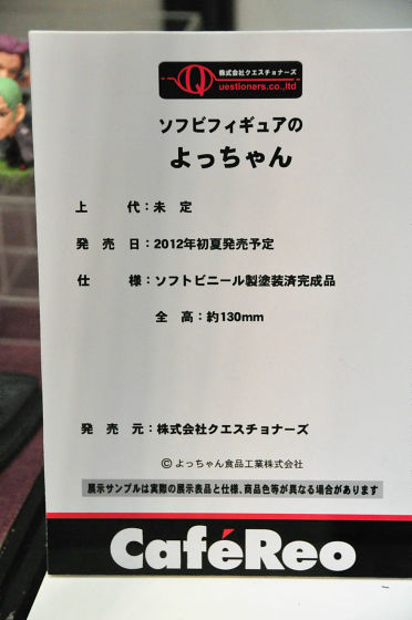 情報 日系 よっちゃんいか魷魚小童立體化 奶油隊長 2012-02-24 13:14:29 分享 ✕ 分享 已複製網址 分享到 Facebook 分享到 LINE 分享到 Reddit 分享到 Twitter 分享到 Plurk 分享到微博 來自日本よっちゃん食品工業株式会社販售的魷魚乾零食的よっちゃんいか魷魚小童(小編暫時翻譯),在WF2012(冬)展覽上公佈他們將把よっちゃんいか包裝上的魷魚小童立體化的消息,在宣傳看板上還標榜著平面世界的烏賊型偶像?!高約為13公分,販售日期2012年初夏發售預訂,販售價格尚未公佈,提供給喜歡よっちゃんいか魷魚小童的玩具人參考。 via Gigazine 奶油隊長 沈迷收集玩具、嗜好設計玩具、熱愛視覺圖像的思考模式,同時也超愛吃各種口味的美式漢堡,希望可以一直玩玩家到 100 歲。