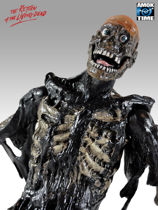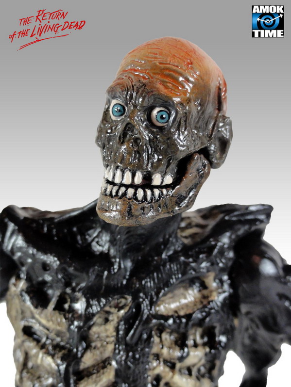 1985年上映,名列影史經典恐怖片的芝加哥打鬼(Return of The Living Dead),由玩具公司AMOKTIME推出場景作品。電影裡兩大特色「復活死人的毒氣罐」以及「被啃蝕的人腦」,也很用心地在這作品裡呈現。瞧這怪物全身黏呼呼的模樣,質感果真一流,怪物的嘴巴也設計能夠開合,整體說來,算是對這部電影致敬的誠意之作。本商品高約18公分,美金參考售價21.99元,提供給有戀「屍」癖的玩具人參考!