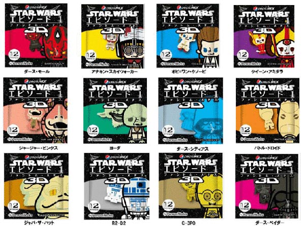 飲料公司PEPSI在日本販售的NEX ZERO 0 熱量可樂,這次預計在2月下旬推出日設計單位PansonWorks風格的Star wars角色造型迷你人型,隨罐(500ml的ZERO可樂)附贈一個Star wars裡面的PansonWorks設計的星戰人物,共有12種造型,並且每瓶附贈抽獎貼紙,還能有機會抽獎抽到15.5公分巨型版本的達斯魔或R2-D2!是想叫大家都買一箱來喝嗎?!