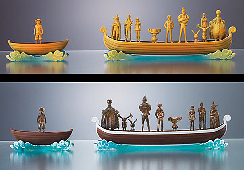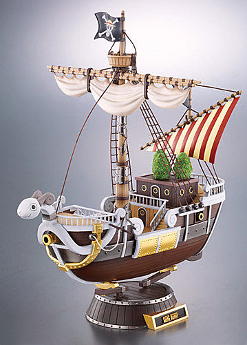 日Bandai萬代玩具公司前陣子才發行過組裝式黃金梅利號的模型,不過對於不太會自行塗裝和作模型的玩家來說非常苦手,在2012WF(冬)展覽萬代玩具公司的新品發表上公佈其新款超合金黃金梅利號,超合金的塗裝完成品讓不會作模型的玩家來說真是一大福音,官網正式釋出宣傳新照片,連船身內部也相當仔細的做出來,附有翅膀配件等等的零件可以裝配成飛天梅利號,船帆也附有收起來狀態的配件,還可以呈現斷裂的狀態(抖),預計2012年6月販售,販售價格約13,824元日幣,喜歡海賊王的玩具人千萬別錯過了!