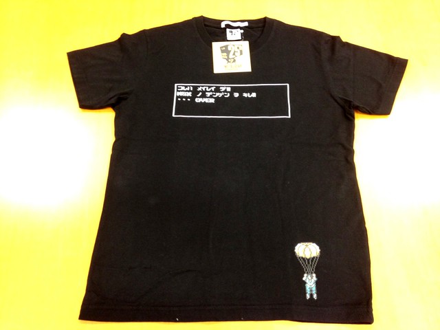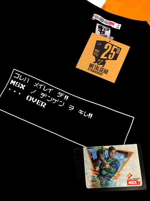 胸口上寫的句子是終盤時出現的經典惡搞台詞『これは命令だ!MSXの電源を切れ!...OVER』(這是命令!把MSX(主機)的電源關掉!...完畢)