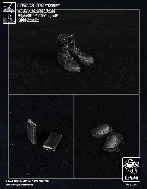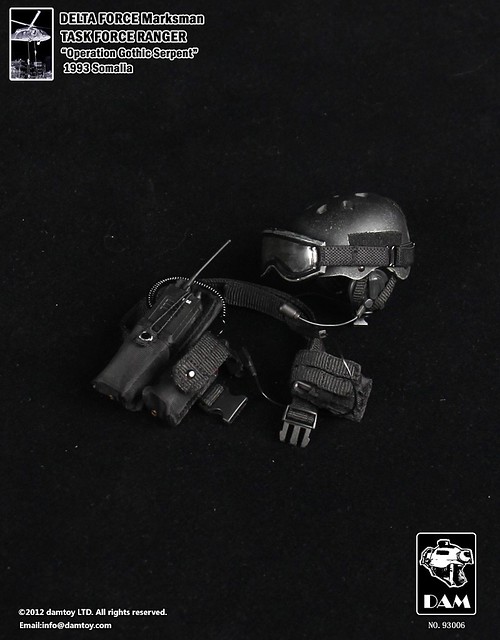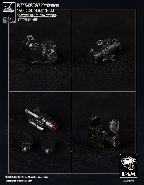 由1993年發生的真實事件“摩加迪休之戰”所改編,英國導演雷利‧史考特(Sir Ridley Scott)改拍成紀錄性電影《黑鷹計劃》(Black Hawk Down),堪稱現代戰爭電影之經典名作。Dam Toy 試圖完美重現“黑鷹計畫”系列商品,近期將發售後續的三款,讓“黑鷹計畫”系列商品告一段落。2012年4月將首先發行DAM 編號:93006 的美國特種三角洲部隊-狙擊手(Marksman)。