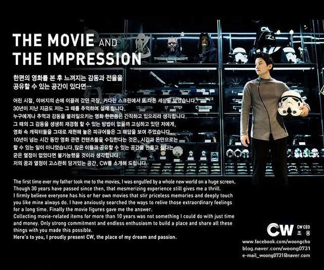 在臉書連結無意間看見一個韓國CW Restaurant的開幕照片,一連過去才看見原來是位相當喜歡Star wars韓國星戰粉絲開的餐廳,在Woong Cho 的開幕照片上面述說自己小時候父親第一次帶他去看Star wars星際大戰的電影,從此就深受影響!30年後開了這間韓國CW Restaurant私人複合性質的玩具收藏館,有用餐、展示玩具等等的複合性質空間的餐廳,相信也會讓星戰粉絲們相當想去朝聖的星戰玩具收藏館之一,當然不只是星戰相關的收藏,還有其他電影相關的玩具收藏也十分驚人,有計劃去韓國旅遊的玩具人可以將CW Restaurant列入你的觀光景點之一歐!