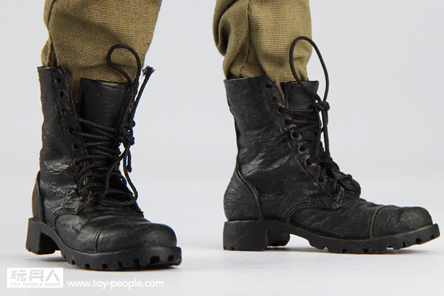 ↓ 軍靴的做工相當細緻,相當利害的地方在於這款軍靴並不是使用一個單一零件套上素體的腳踝作為足部的零件,過去使用單一零件的製作方式讓腳踝與腳掌完全沒有任何活動性;但是這一款切‧格瓦拉是使用多重零件製作而成讓腳穿上,但卻又不會太薄,同時保有腳掌的靈活性與軍靴的厚重質感。