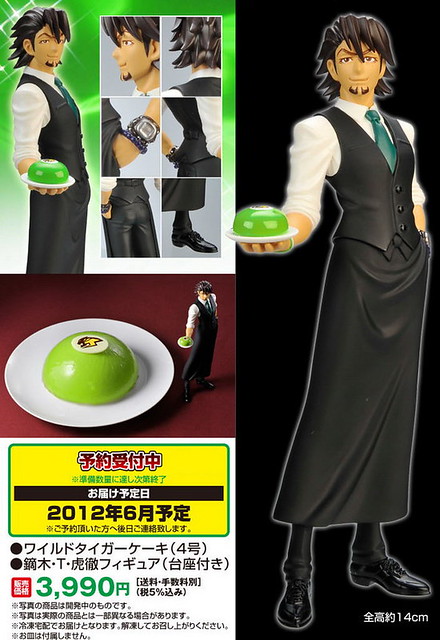一個成功的企畫往往就會不斷推出新商品,還記得先前小編介紹過的EVA蛋糕嗎?將蛋糕加上人氣角色元素與特製公仔,配上限量的誘惑,絕對是現在秒殺所有人錢包的成功企畫!現在為您介紹的是近期在日本當紅作品TIGER&BUNNY所推出的蛋糕。蛋糕本身採用了虎徹的配色,剖面來看十分誘人可口。隨著蛋糕附贈的就是虎徹服務生的造型公仔,而手上拿著的就是本蛋糕的縮小版!還真是有梗啊!本商品目前已經在日本開放預購,限量定價3990日圓,預計6月正式到貨。另外,本次情報網頁最下方也預告了4月將推出另外一個神秘作品,敬請期待喔!