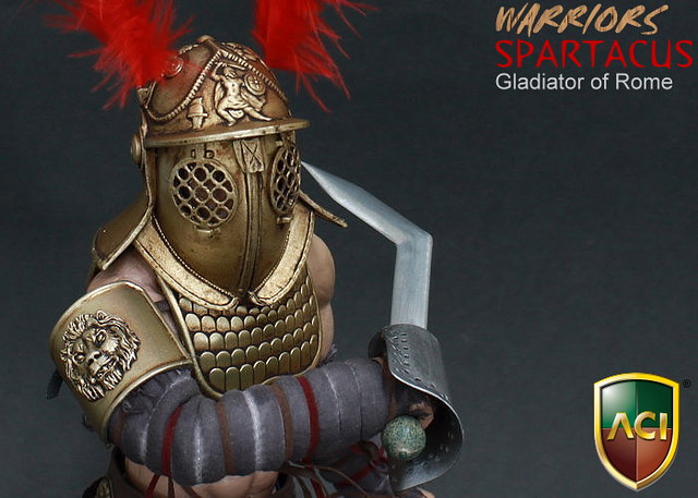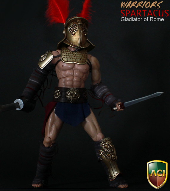 香港老牌玩具公司「ACI Toys」新推出羅馬鬥士公仔傑作。頭雕神似「斯巴達克斯:血與沙」的作者「安迪‧懷特菲爾德」,因為這已經不是ACI Toys首次推出羅馬鬥士作品,所以素體的肌肉表現以及鎧甲的厚重金屬質感表現十分優異,特別是頭盔上的細緻雕紋令人激賞!實屬難得的作品!有興趣的朋友不妨比照我們先前介紹的類似作品: