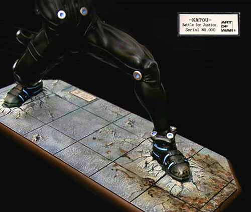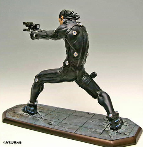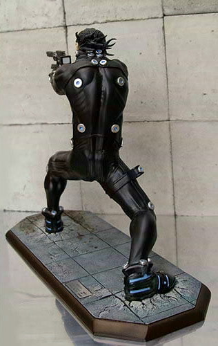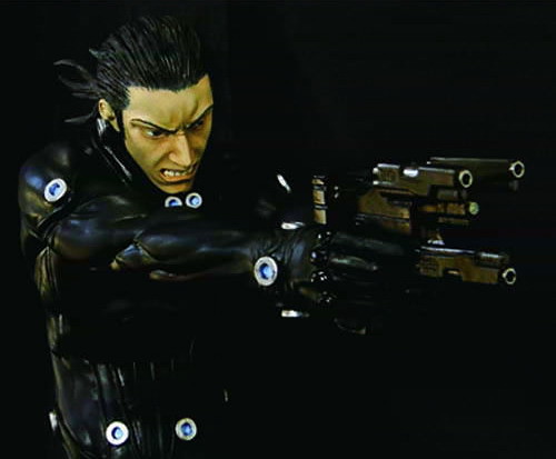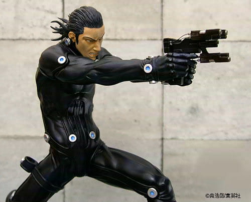日本人氣直昇的科幻暴力漫畫GANTZ(台譯:殺戮都市),最近由ART OF WAR玩具公司推出原作中的正義使者加藤勝雕像作品。作為ART OF WAR 15週年的紀念作品當然不會馬虎,整體角色的動作張力十足,地台上被加藤踩出凹陷,足以想見戰鬥慘烈!另外地台上還可隱約看到莫名液體,想必正是異星生命體把打爆噴濺出來的吧!初回生產限量100份,還加贈行李箱模型一個。作品大小約H29XW39XD14公分,日幣參考售價約68250日圓,提供大家參考!