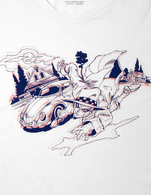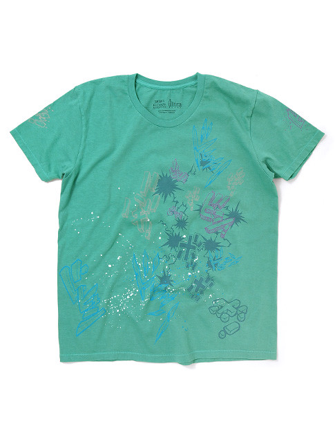這次的三款ultra BRAND 新作,是以「ビシ!」「バギ!」「ドヒュン」等經典漫畫狀聲字構成的『ECHOES ACT1』、山岸由花子的剪影與圖形文字設計的『LOVE DELUXE』,最後是劇中劇,岸邊露伴連載漫畫為插圖、左側腰部位置還有露伴老師簽名的『PINK DARK BOY』。以上三款商品即日起於ultra-violence.com開始接受預購,日本時間4月20日23:00截止,預計2012年5月下旬~6月上旬開始寄送。