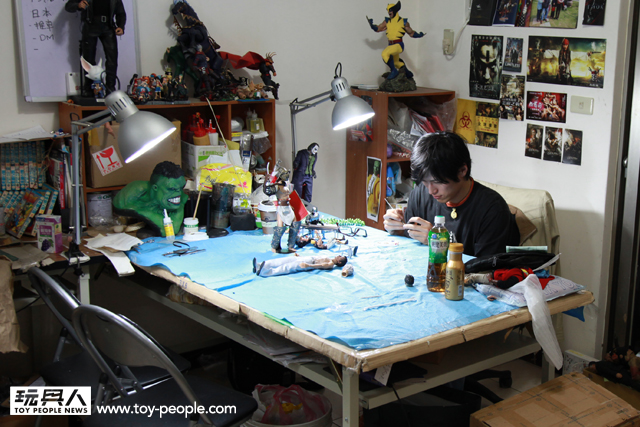 ↓ 工作桌上還有正在製作的頭雕。與一般12吋廠商不同的地方在於,Asmus Toys的頭雕在女工上完色之後,AD還會全部修飾過才出貨。