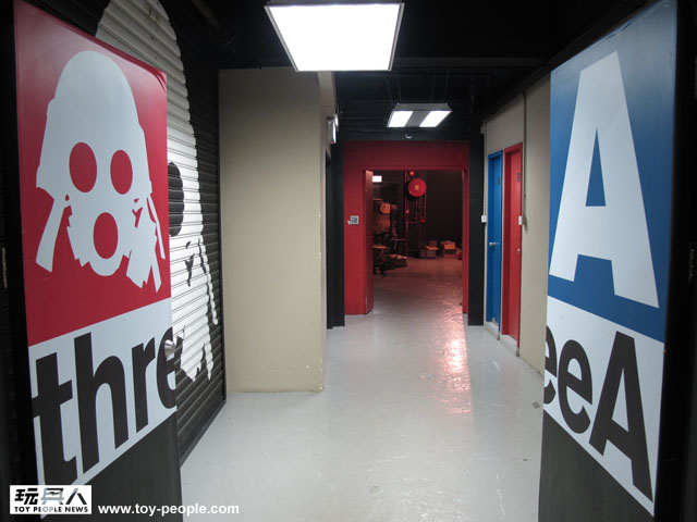 ↓ threeA玩具製作公司的大門,有相當明顯的threeA字樣和Logo