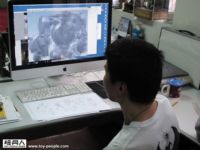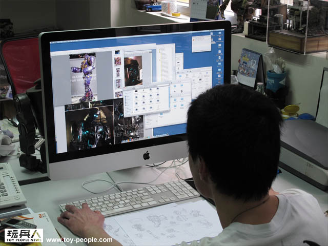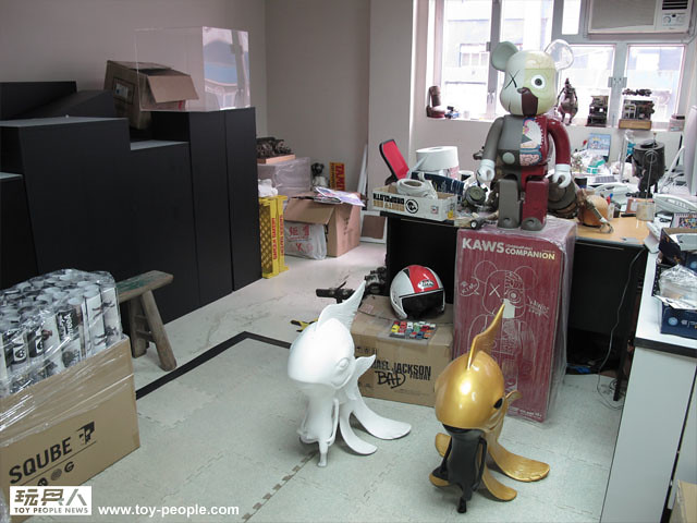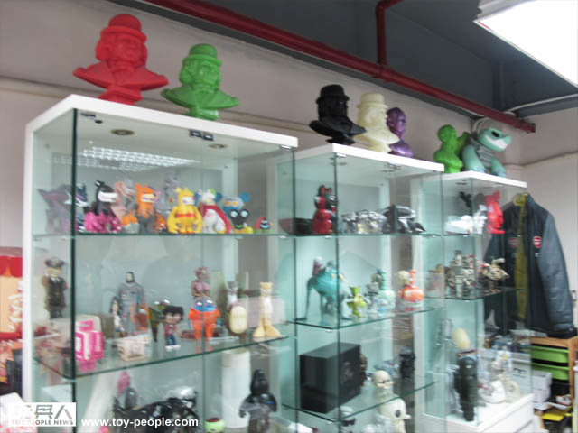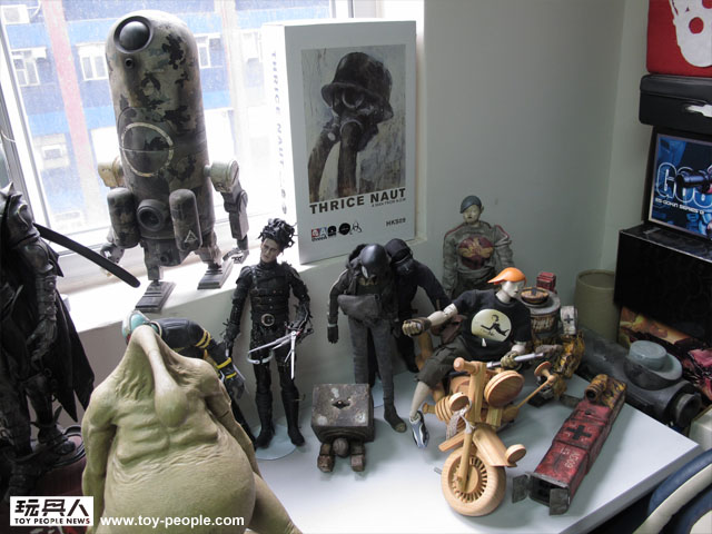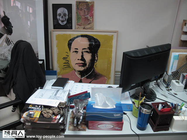 ↓ 鋒哥的辦公桌旁邊放滿著threeA發行的12"人偶和他自己喜歡的玩具收藏