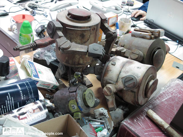 ↓ Kenny和小編都坐下來把玩和研究一下這個突擊者,鋒哥百忙當中還為我們解說,這次製作電影鋼鐵擂台的角色玩具