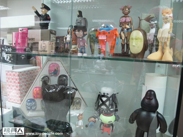 ↓ 還有個大玻璃櫃也放著threeA發行和製作過的相關玩具樣品等等,其種類真是非常多元!