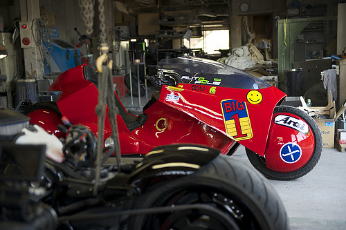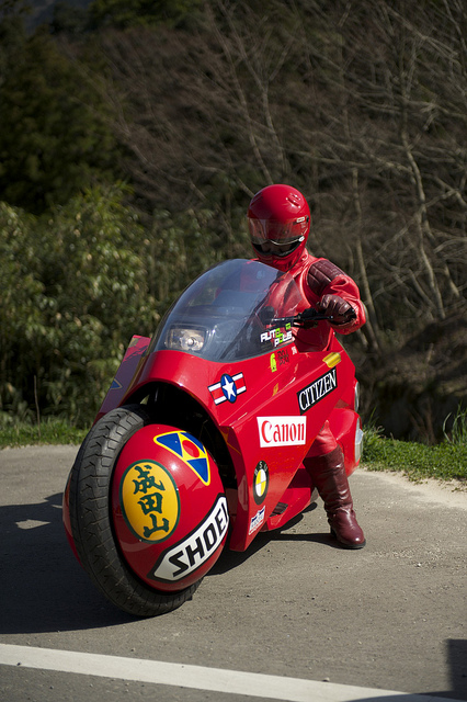 在2012年4月9日大友克洋GENGA展已經在東京開始展出了,主辦單位請來了大友克洋老師的經典漫畫中出現的主角金田(角色扮演)和他駕駛的機車做個特殊的宣傳活動,當然駕駛機車的人也扮演成金田,身穿專門製作的漫畫中金田所穿著的皮衣樣貌,對金田的皮製外套有興趣的玩具人可以參考下方相關連結。