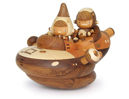 玩膩了塑膠或是鐵製玩具嗎?今天為您介紹獨特的木造玩具人中川岳二。這位日本出身的大師,擅長使用日本傳統木造工藝技法「寄木細工」去創作玩具,這是一種自江戶時代就傳承下來的木造工藝技法,特色是將不同顏色的木材拼接起來,利用色差創造獨特配色的工藝技法。因為擅長這項獨特的技術,使得中川岳二的作品在玩具界裡獨樹一格,另外中川對造型的想像力十分令人激賞,他將機器人主題與木製品結合,彷彿就是理性與感性的完美結合,因此創造出獨一無二、無可比擬的玩具作品!另外他也有其他創意家俱等作品....如果您想更深入瞭解,不妨到他的官網瞧瞧:http://take-g.com,相信您跟我一樣都會有很深刻的感動!