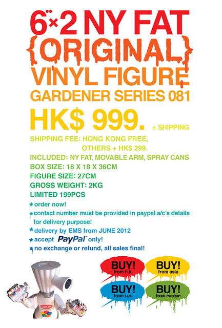 Michael Lau 6"x2 NY FAT {ORIGINAL} VINYL FIGURE 高27公分,全球限量199隻,售價999港幣,香港以外地區需加收299港幣運費。有興趣可至此購買:crazysmiles.com