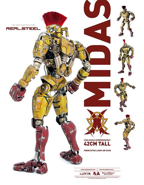 在今天開始預購鋼鐵擂臺:突擊者(AMBUSH)的同時,threeA 公佈了下一款鋼鐵擂臺的角色“金霸王”(MIDAS)。threeA - 鋼鐵擂臺:金霸王(MIDAS) 2012年8月24日上午九點將於bambalandstore.com 上接受附贈控制器限定版預購,售價290美金。錯過或無法在bambalandstore.com 購買也可購買一般由野獸國玩具所代理的零售版。
