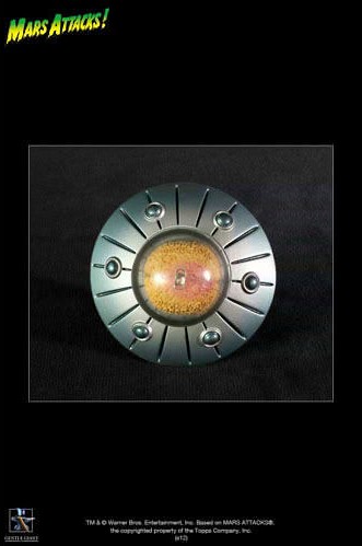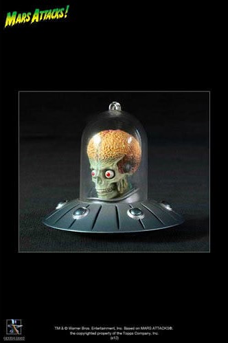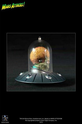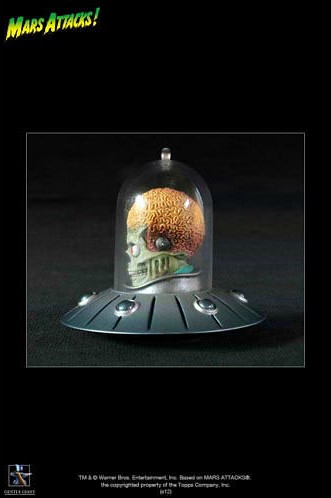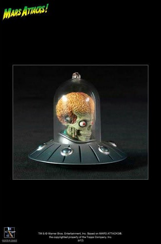 鬼才導演提姆波頓的代表作「星戰毀滅者」堪稱影史最昂貴的KUSO電影,也是科幻迷眼中的經典,其實概念來自於1962年所推出的集換式卡片MARS ATTACKS。如今將由玩具公司Gentle Giant推出幽浮的立體化作品。本商品高約8公分,美金參考售價約49元,目前官方網站已經開放預購,預計2012年第4季推出,有興趣千萬別錯過!(您不知道「星戰毀滅者」嗎?以下精湛影評提供您參考,無論這部電影如何毀譽參半,小編認為都不應該錯過喔!:星戰毀滅者影評)