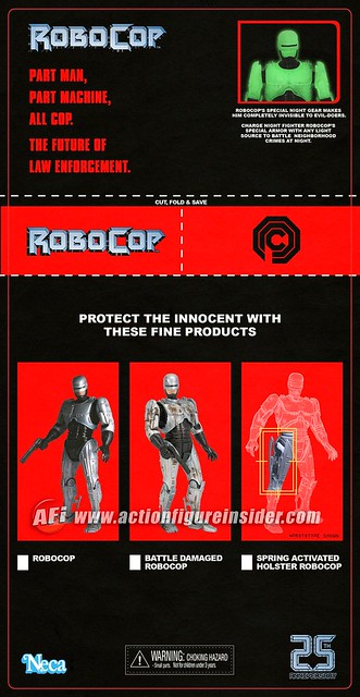 美國玩具廠商NECA將推出向1989年Kenner 作品致敬的Night Fighter Robocop 機器戰警夜光吊卡玩偶!這一款Night Fighter Robocop 最早公佈於1989 年Kenner 於1989 Toy Fair 會場所發的目錄上(第22~27頁),Kenner 以ROBOCOP AND THE ULTRA POLICE 為系列命名,推出許多機器戰警角色與載具的玩偶,並持續發展至1990年為止。其中最受矚目與歡迎的就是“RoboCop Nightfighter Ultra Police Leader”。NECA 在取得版權之後將推出屬於他們的新版本Night Fighter Robocop 向舊版Kenner 致敬。