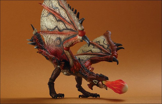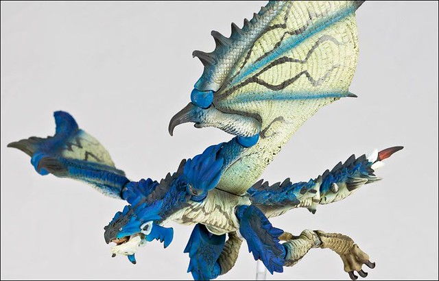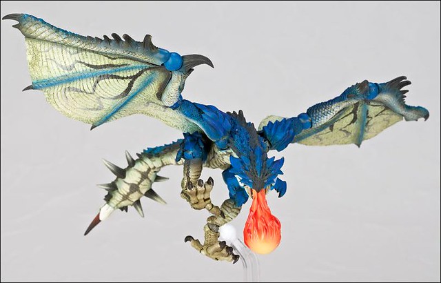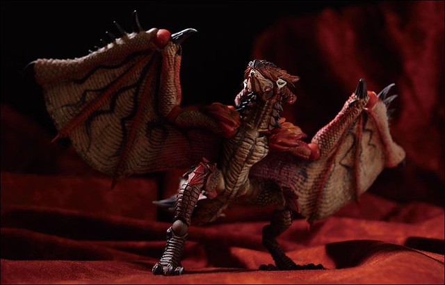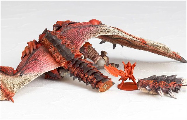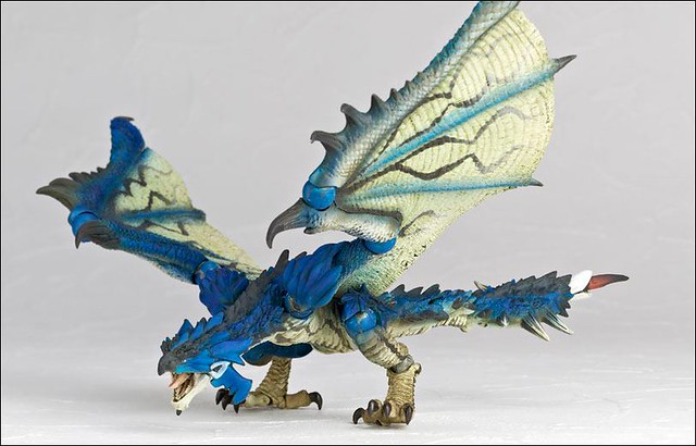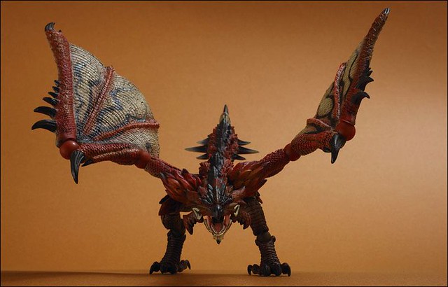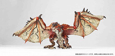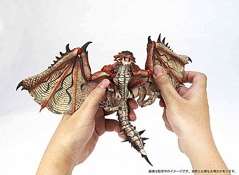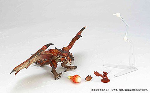 全長約20.5公分翅膀全副張開約28.5公分,全身可動關節數約23個,還有附小的魔物獵人配件,宣傳照片上還特別拍出砍下火龍尾巴的模樣,預計2012年7月15日發售,售價約3,980元日幣,喜歡魔物獵人的玩具人千萬別錯過了!