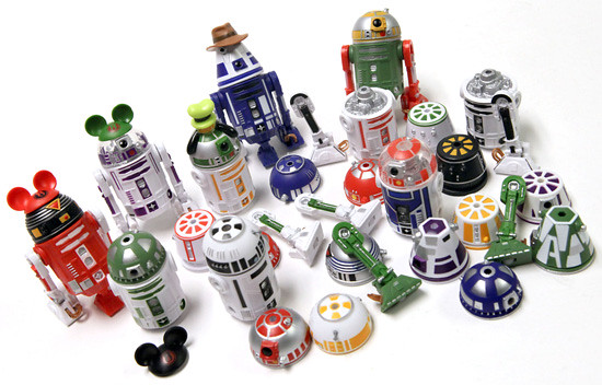 Droid Factory目前總共已開發了71種不同的Astromech droid的零件,讓玩具人來打造一個自己的3.75吋的機器人!玩具人可以從各式各樣不同風格與顏色的零件中,先找一個自己喜歡的機器人頭上的圓蓋(dome)、身體(body)、腿(legs);此外,玩具人可以選擇要不要加前面的第三條腿以及各種樣式的帽子喔!