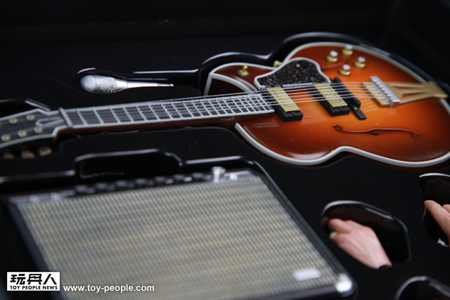 配件的部分,經典名琴GIBSON SUPER 400 吉他完全忠實呈現,每一個弧度都圓滑優美;即便是存在感渺小的麥克風與音箱,也都做到造型真實考究,這樣優異的表現令人印象深刻!ENTERBAY 這一款精緻的收藏級人偶,其精緻完美的做工,加上有別於市面上異質性的路線,絕對能稱的上是經典傑作!