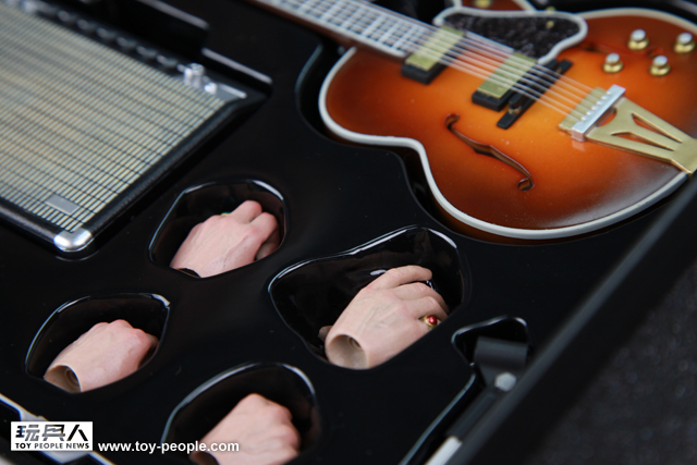 ↓ 每一隻手都是為了這款貓王重新製作,拿著匹克與按弦的手部市面上少有,且做工一流,連手上的戒指也忠實呈現。