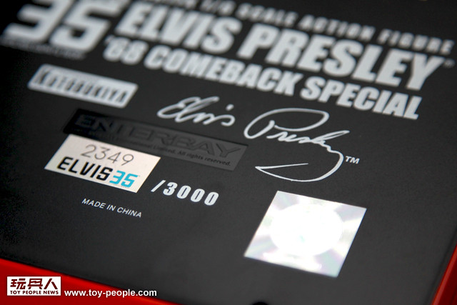 為了紀念1977年過世至今已35年的搖滾樂壇巨星“貓王”艾維斯‧普利斯萊,日本造型大廠壽屋與世界及頂尖技術12吋廠商ENTERBAY跨國合作,推出“ELVIS PRESSLEY ‘68COMEBACK SPECIAL ARTFX 1/6 SCALE ACTION FIGURE”,由壽屋負責貓王授權的管理,Enterbay 全權負責設計、製作、開發與生產。