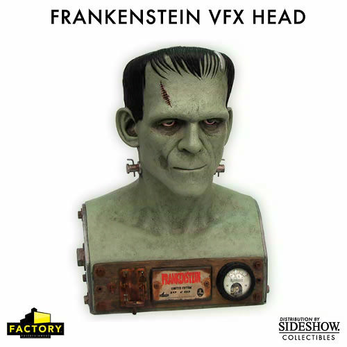 科幻迷請別錯過這款優秀的科學怪人頭像傑作。由Factory Entertainment打造的這款作品,除了超擬真細緻的特徵外,還內建發光(眼睛)以及音效功能,逼真而且氣氛十足。此外這款作品台座的優異舊化以及儀表版、充電線路等等,也讓人充分感受設計者的用心。商品大小約高40.6公分X寬35.5公分,全球限量1500份(台座上會標示限量編號),美金參考售價約449.99元,預計2012年12月推出,有興趣可以上網預購囉!