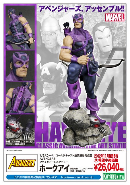 壽屋 - ファインアートスタチュー ホークアイ 高約320mm,預計2012年11月發售,參考售價26,040¥