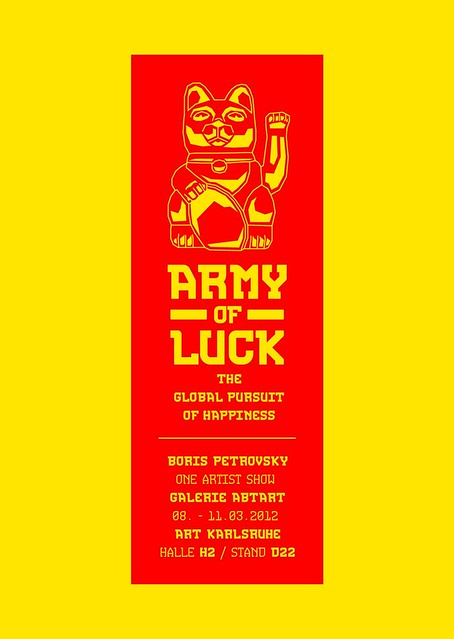 活動展覽 THE ARMY OF LUCK 幸運軍隊 奶油隊長 2012-05-23 12:24:53 分享 ✕ 分享 已複製網址 分享到 Facebook 分享到 LINE 分享到 Reddit 分享到 Twitter 分享到 Plurk 分享到微博 由德國藝術家Boris Petrovsky創作的THE ARMY OF LUCK 幸運軍隊(暫時翻譯),運用520個金色招財貓作成的幸運軍隊展覽,招財貓舉右手是招財運、舉左手是招好運。 Boris Petrovsky還在招好運貓的體內裝置IC版,可以控制好運貓的左手,由影片中可以看見還可以舉出波浪和些暗藏的訊息,訊息出處相關照片是攝影師Nina Martens拍的,分享給喜歡招財貓/招好運貓的玩具人。 via petrovsky 奶油隊長 沈迷收集玩具、嗜好設計玩具、熱愛視覺圖像的思考模式,同時也超愛吃各種口味的美式漢堡,希望可以一直玩玩家到 100 歲。
