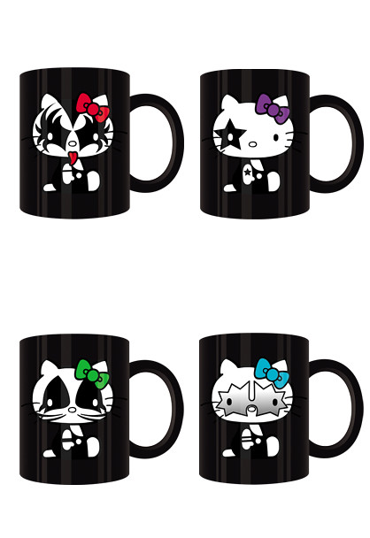 KISS × HELLO KITTY 馬克杯 預計2012年6月發售,高度約95mm,一共四種款式:『THE DEMON』、『THE STARCHILD』、『THE CATMAN』與『THE SPACEMAN』,參考售價每款1,380¥