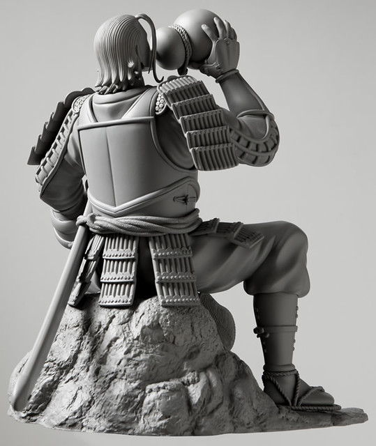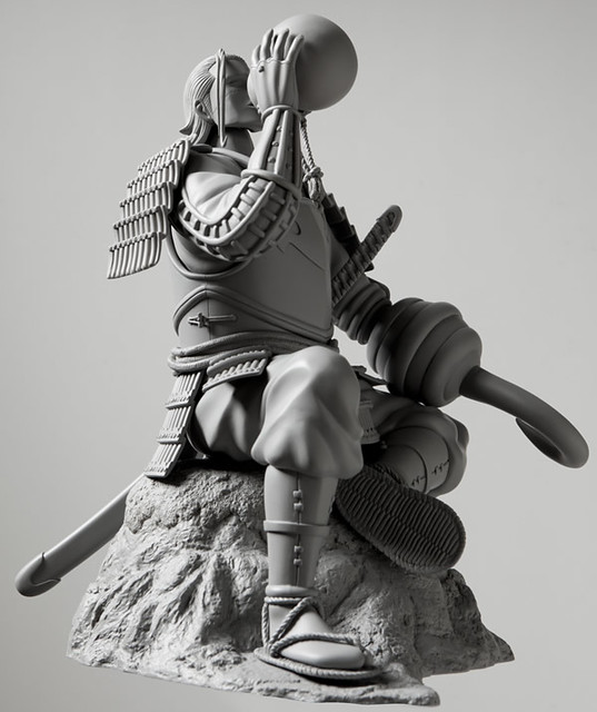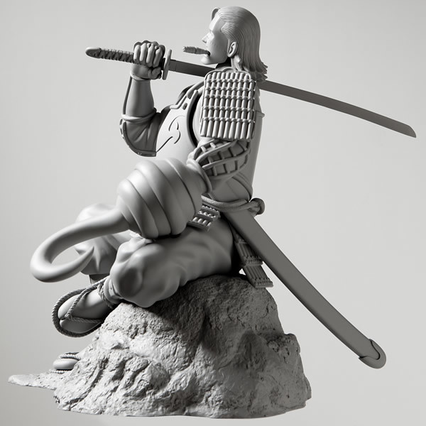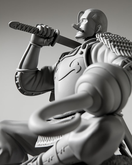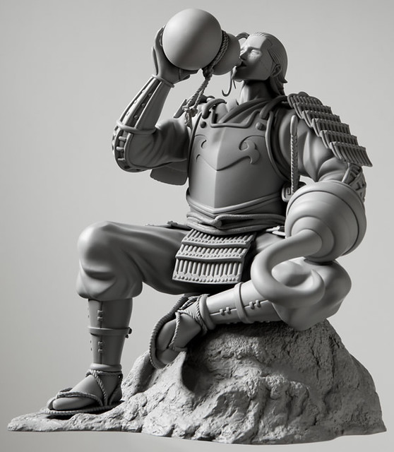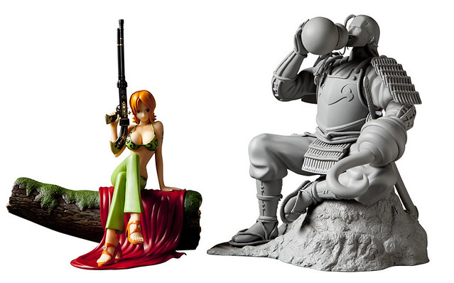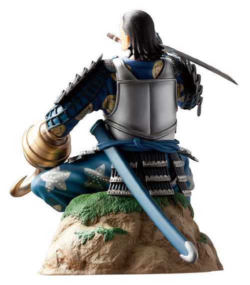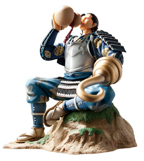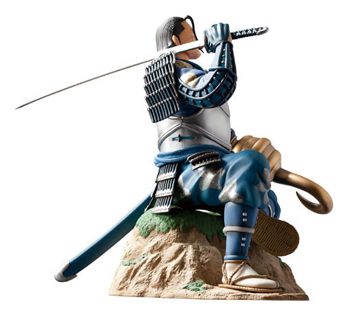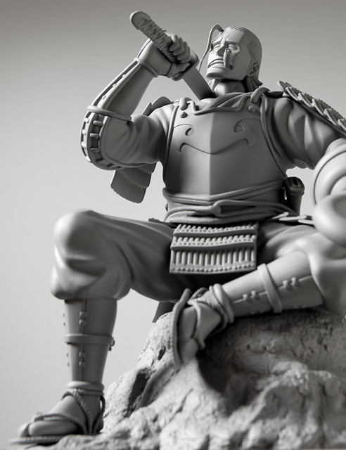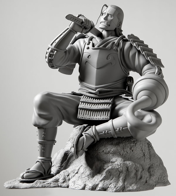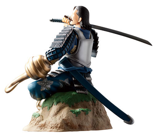 D.P.C.F第9號作品「武士克洛克達爾」近期揭露製作中的原型情報。從圖片來看設定是來自海賊王第547話「島破り」的刊頭插畫,一身藍白色華麗鎧甲的克洛克達爾正在豪邁飲酒。與原作略微不同的是克洛克達爾坐在特製的岩石台座上,這麼設定應該是將平面作品立體化的現實考量。同時藉由石頭台座更能展現克洛克達爾的高大體魄以及戶外飲酒的氛圍。本商品一樣附有配件可以替換,讓原設定中飲酒的姿態,變成手持武士刀、悠閒抽煙的模樣。