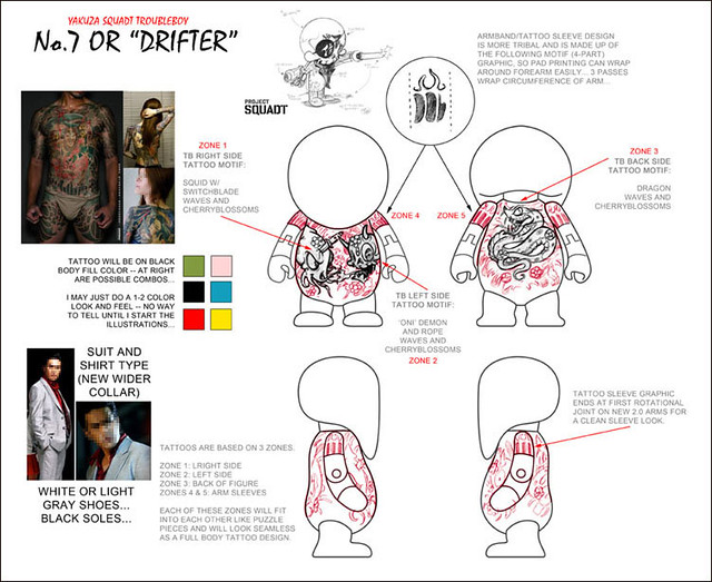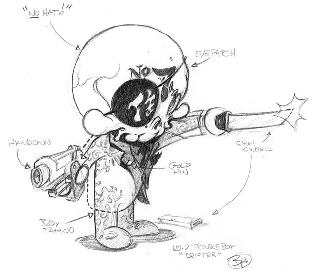 由Ferg 的當紅系列Project Squadt與Brandt Peters 聯名,獲選為2011年最佳設計師聯名玩具的“TROUBLEBOYS”系列,每一個款式都創下上百支在數十秒內銷售一空的空前記錄;在今年初的TRIGGER: Brandt Peters x Ferg Art Show 聯名展中,展出了一款備受矚目的款式TROUBLEBOYS NO.07 [DRIFTER],這個款式將在日本知名設計師玩具店「飛騨高山 留之助商店」限定販售,並且塗裝比以往更加地豪華,使用了全身的刺青,以及布製刺繡的眼罩,想必一定會創下一個更可怕的秒殺記錄。